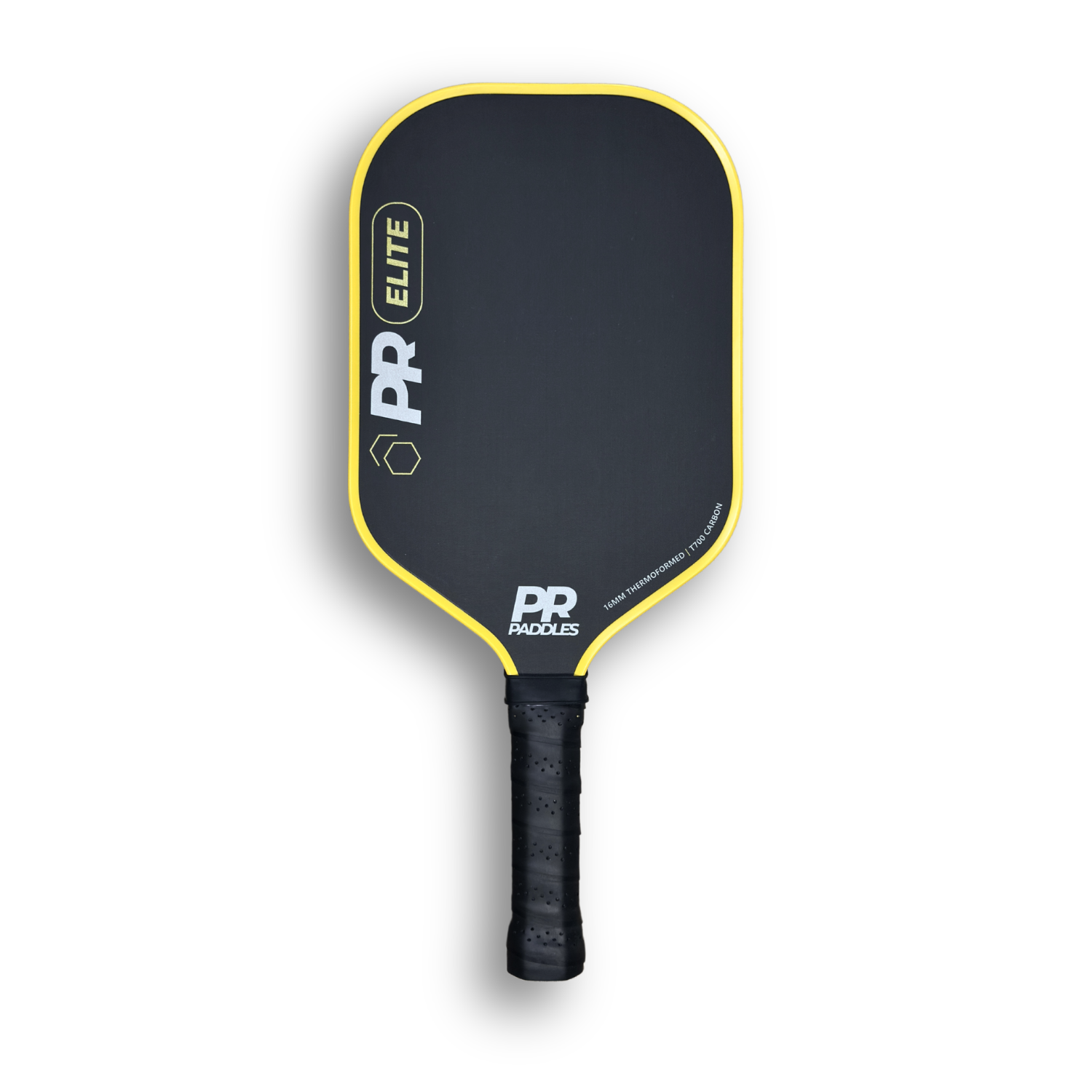 Built with advanced materials and construction, the PR Elite features a T700 raw carbon fiber surface, thermoformed unibody design, foam-injected edge walls, a 16mm polymer core, and an extended 13.97cm handle for added reach and control.